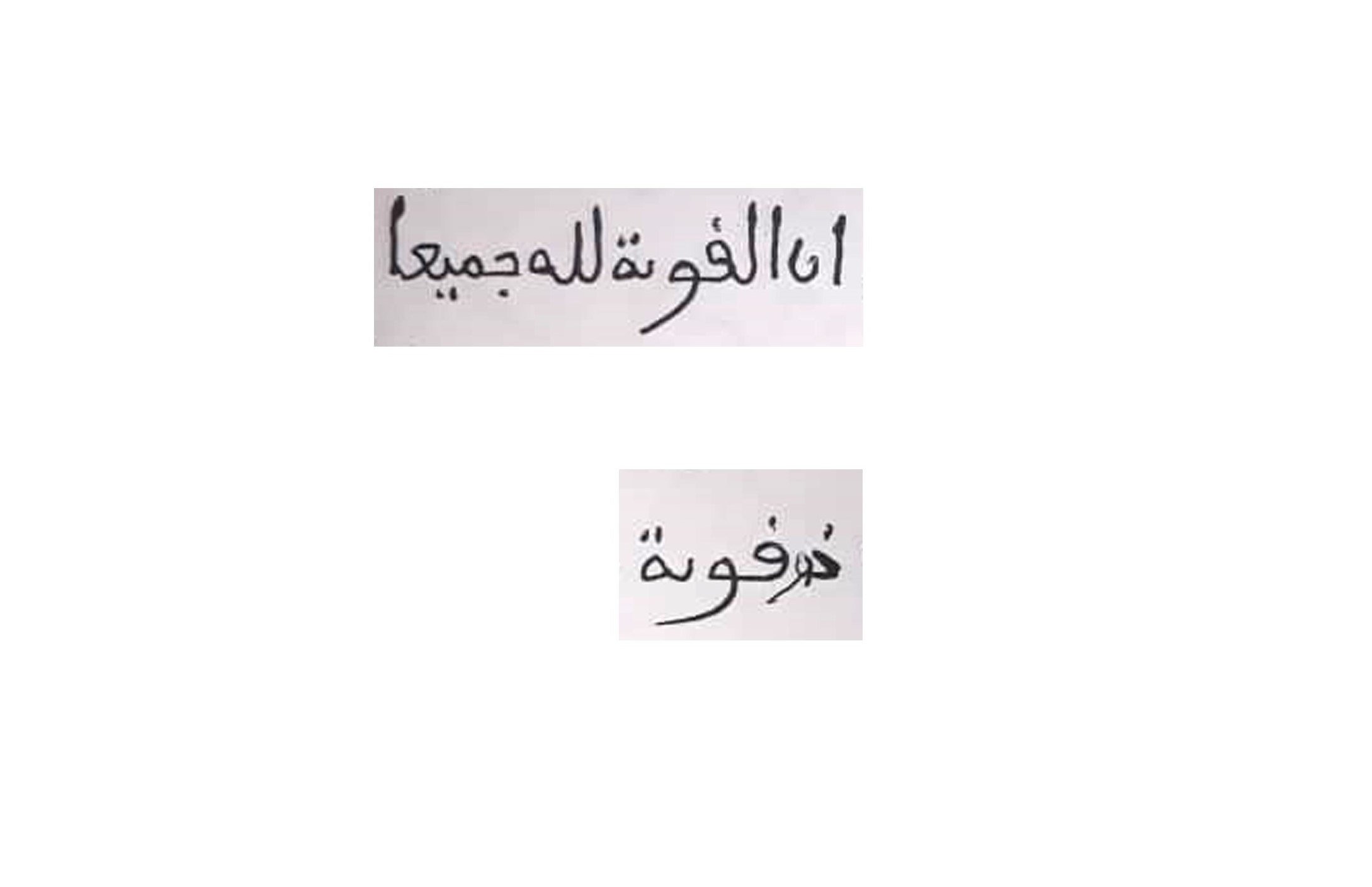 The 2 short phrases or sentences in the following attachments are Arabic or related language I am trying to understand. Is there anyone here knowing Arabic, Persian, or other related languages who can help me with this? The idea is to have them from their handwritten format to a typed one for clarity.